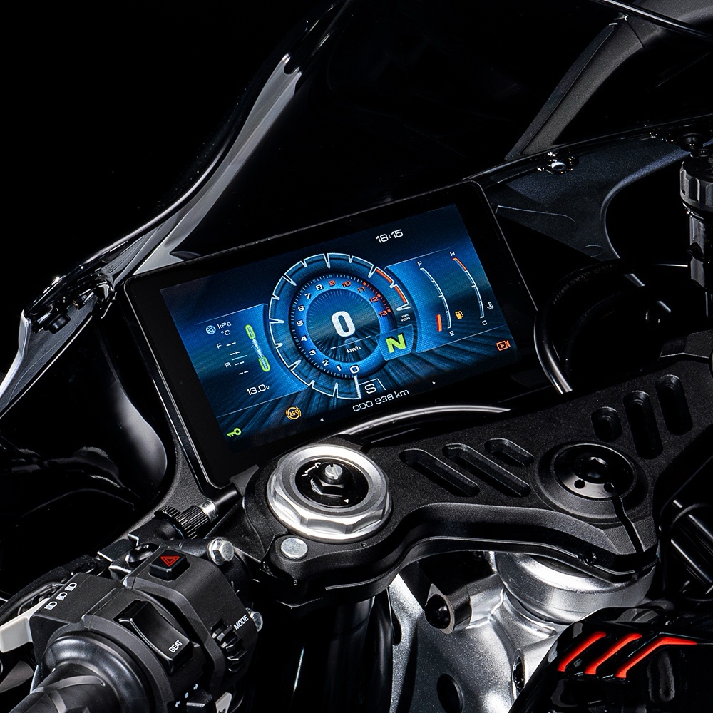 Na prvi pogled, Zontes 703RR osvaja sportskim, oštrim i agresivnim dizajnom. Dinamične linije karoserije, u kombinaciji s impresivnim Full LED osvjetljenjem, naglašavaju futuristički karakter motocikla i stvaraju snažan osjećaj brzine i kretanja čak i kada miruje.